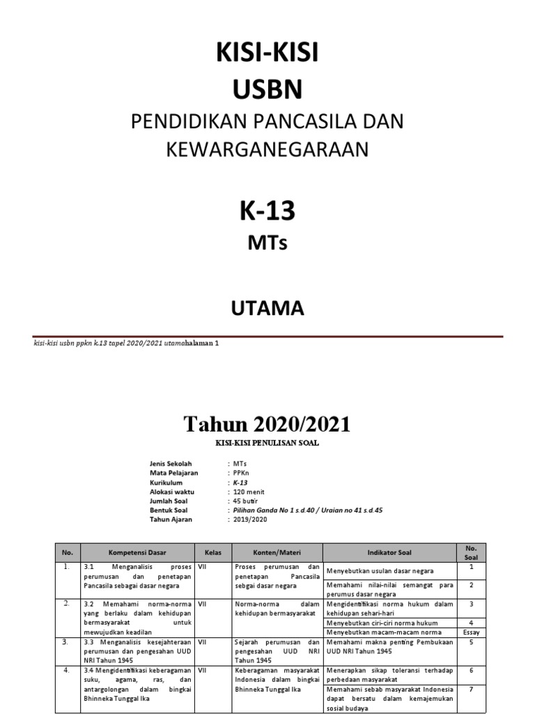 / Kisi Kisi Um Pkn Mts 2021 / Kisi Kisi Mapel Ipa Ujian Madrasah Um Mts Tahun 2021 Guru Jugan - Namun kali ini admin akan bagikan khusus untuk mapel yang umum.